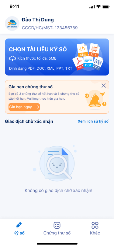 Bước 1: Nhận thông báo gia hạn chứng thư số