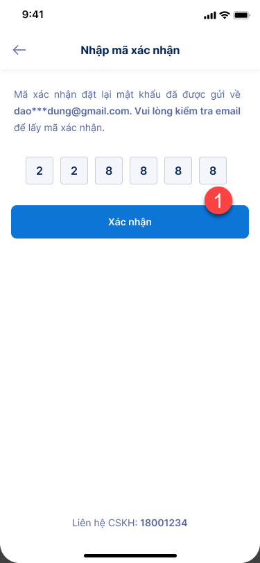 - Nhập mã (06 số) được gửi về qua SĐT hoặc Email đăng ký.