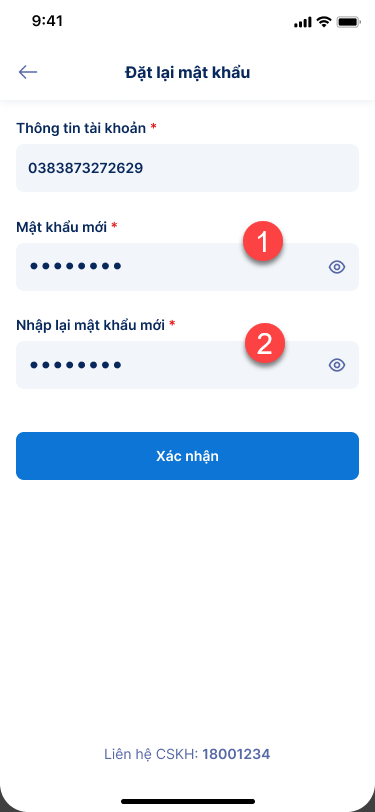 - Nhập mật khẩu mới à nhập lại mật khẩu đã tạo.