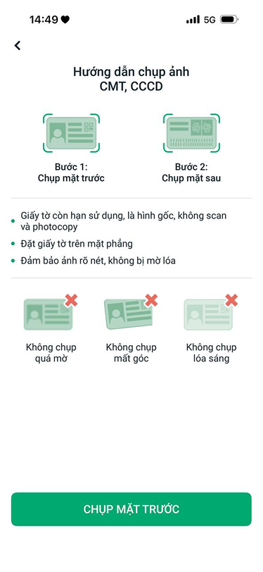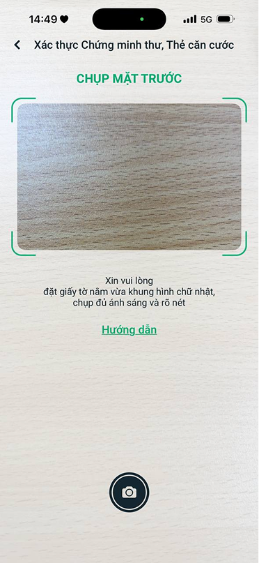 - Thực hiện chụp ảnh giấy tờ tùy thân và xác thực khuôn mặt theo hướng dẫn.