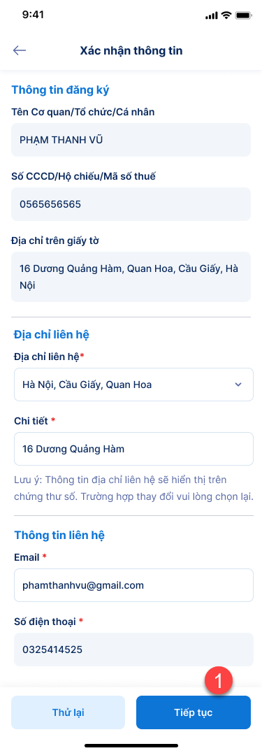 Chỉ áp dụng khi đăng ký chứng thư số từ lần thứ hai trở đi.