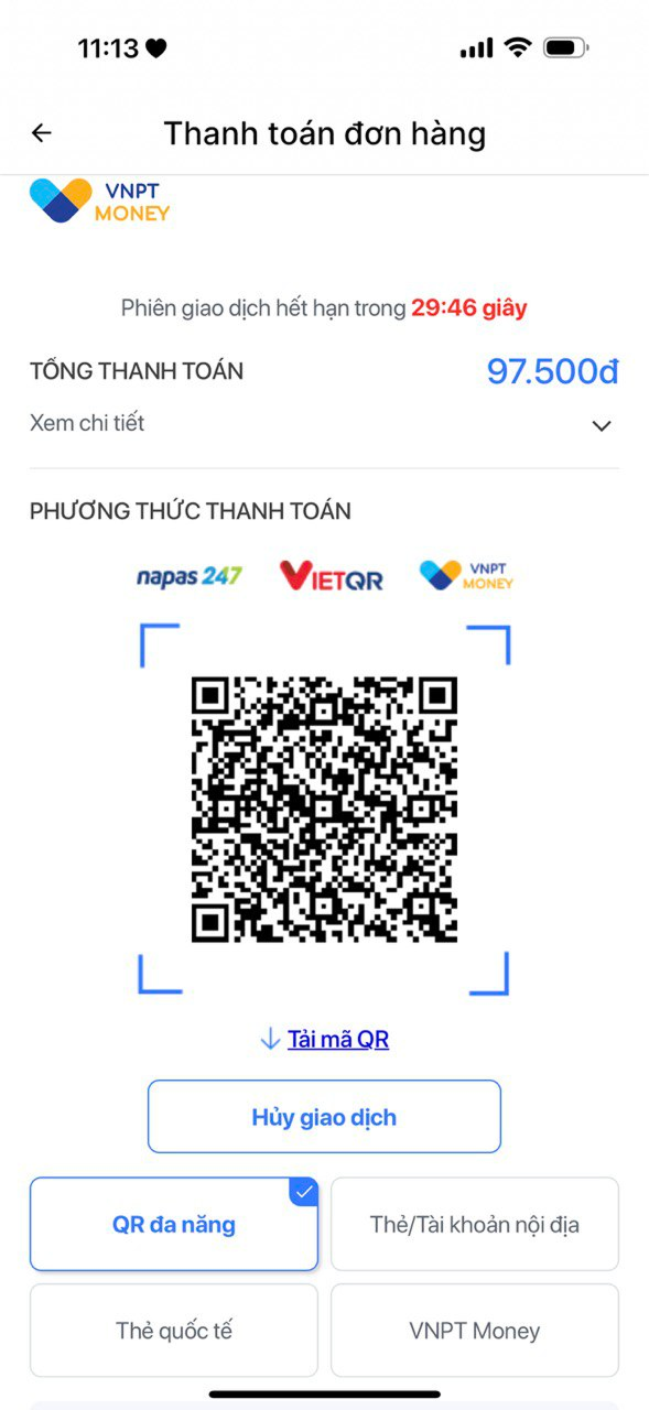 - Quét mã QR để tiến hành thanh toán đơn hàng.